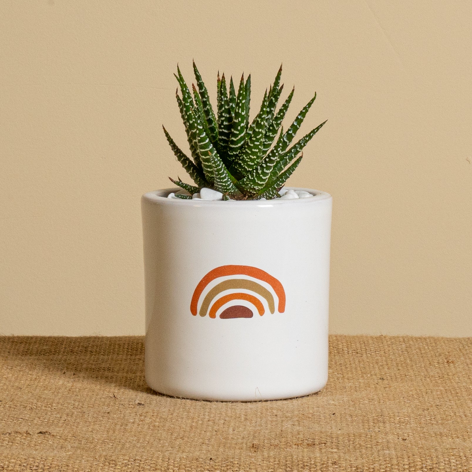 Porta colore nella tua vita con il nostro vaso di ceramica personalizzato con un arcobaleno! Un tocco vivace di gioia e positività che cresce con te.