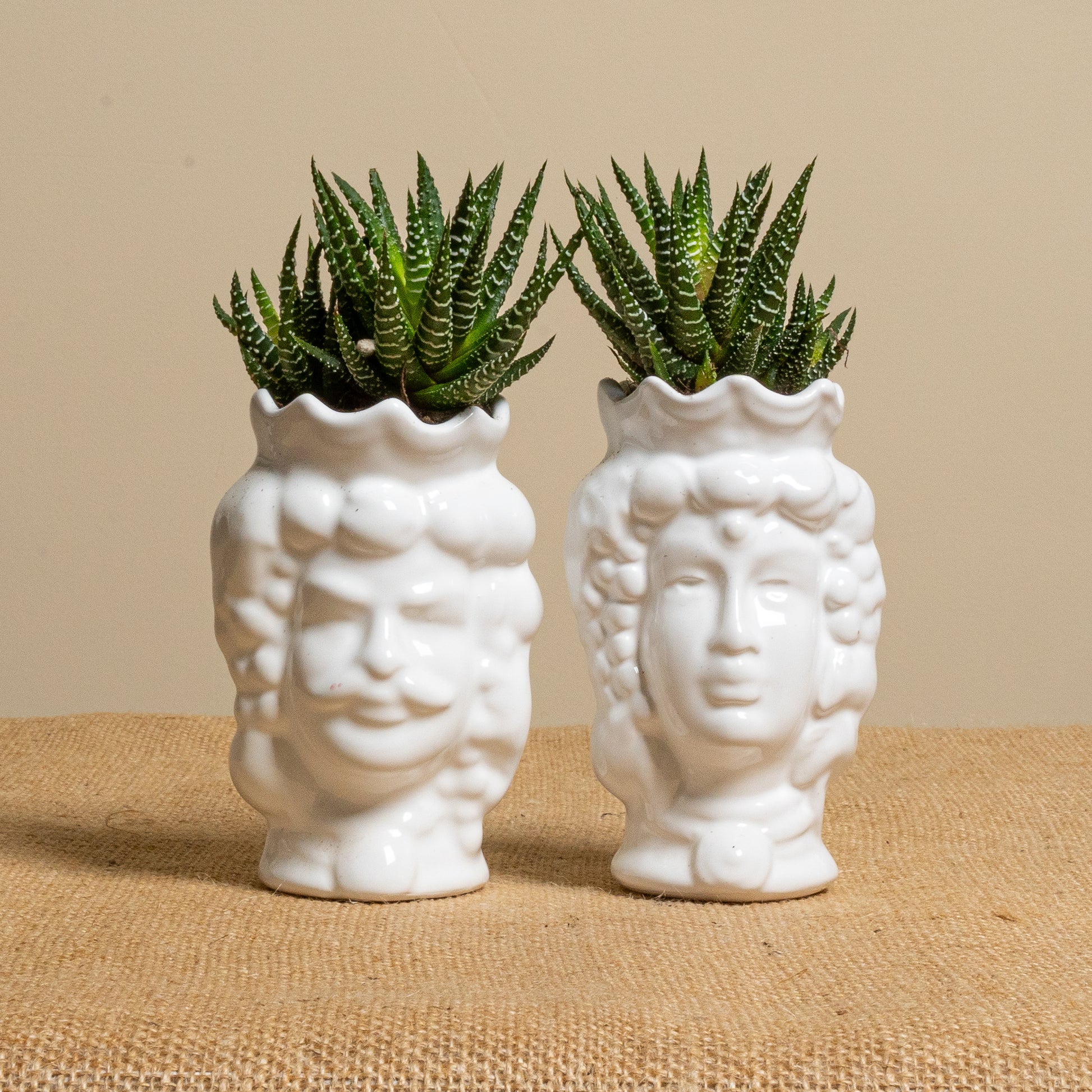 Eleva l'eleganza della tua casa con la nostra coppia di vasi teste di moro che accolgono con gioia le nostre piante grasse vere! Un tocco sofisticato e un regalo chic per gli amanti del design. Aggiungi stile verde alla tua vita!