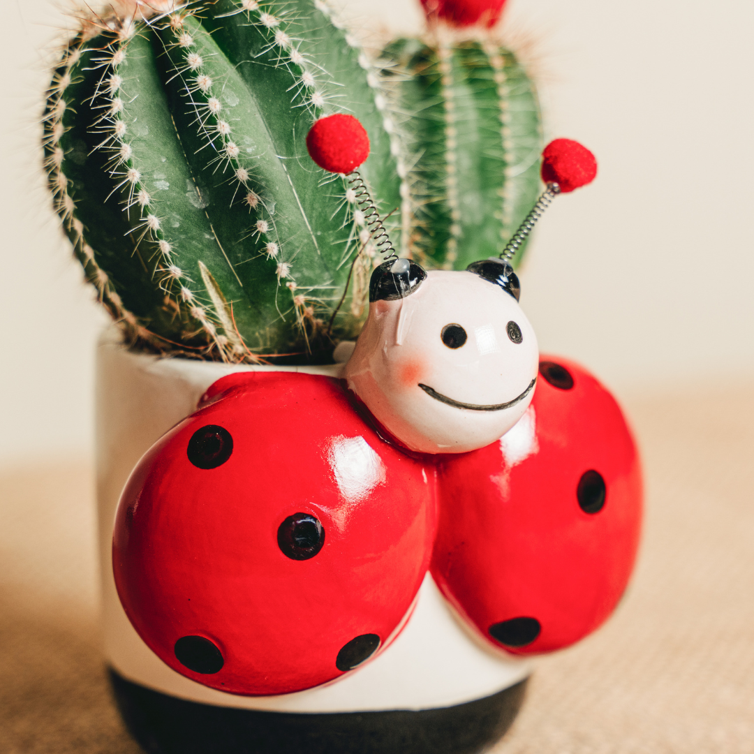 Fortunella è una simpatica coccinella in ceramica che porta con sé una vera piantina grassa: resistente, facile da curare e sempreverde. Un’idea regalo originale per augurare fortuna a chi ami, o un dettaglio speciale per arredare casa con colore, natura e un sorriso.