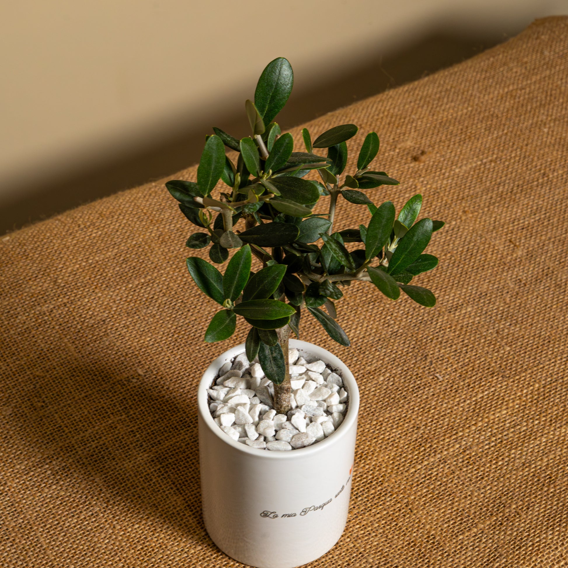 Un pensiero che cresce con la Pasqua: un vaso in ceramica con la dedica 'La mia Pasqua siete voi', arricchito da una piantina di ulivo, simbolo di pace e rinascita. Un regalo perfetto per chi rende questa festa ancora più speciale