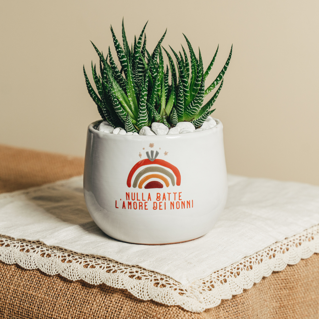 Regala un po' di verde e amore ai nonni con il nostro vaso di ceramica con pianta grassa vera! Un omaggio speciale che cresce con la dolcezza dei nonni. Rendi la loro giornata più verde e felice!