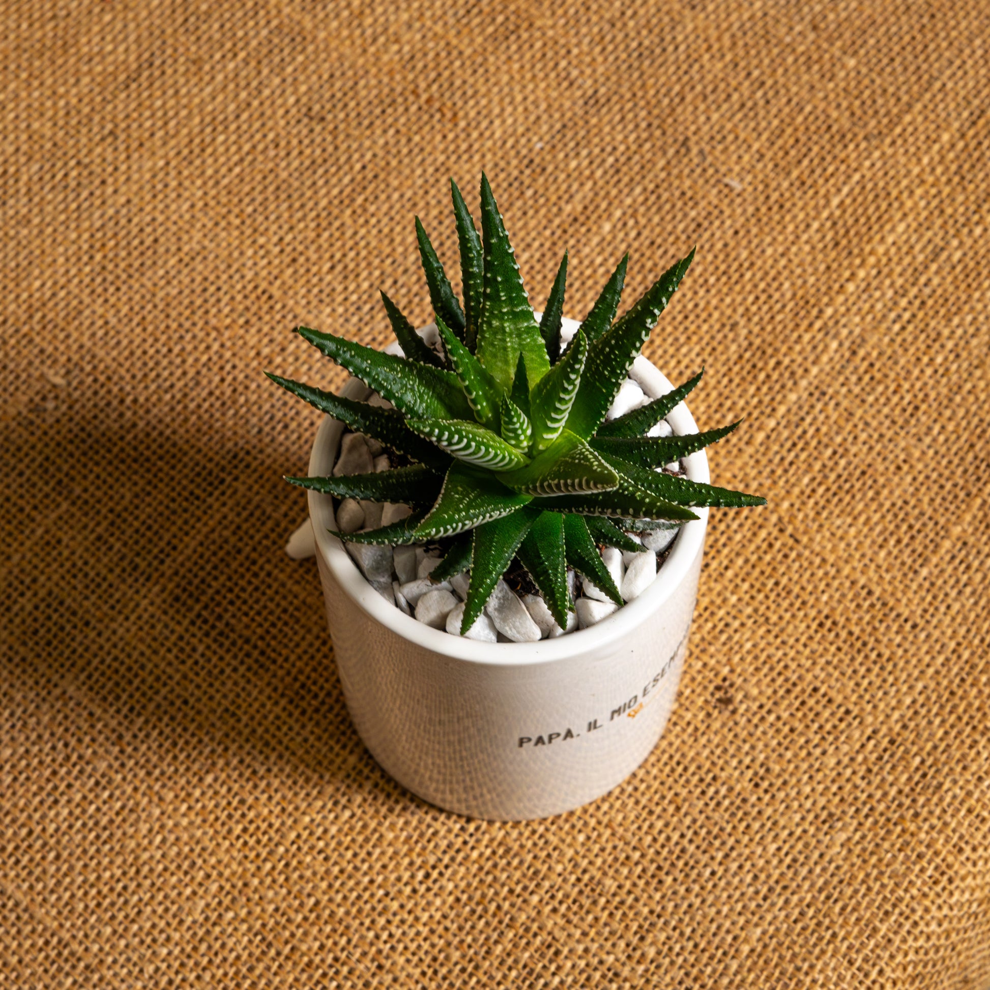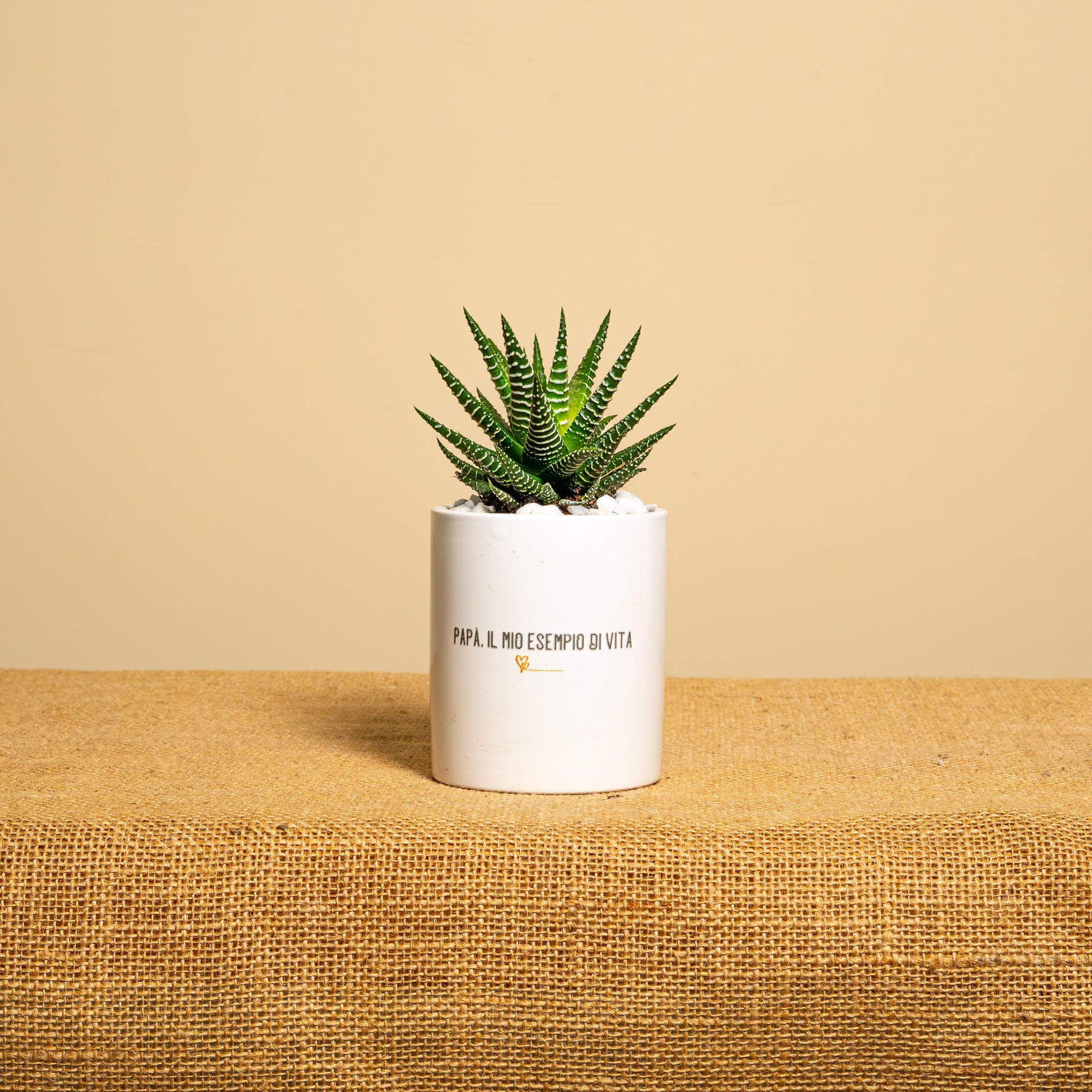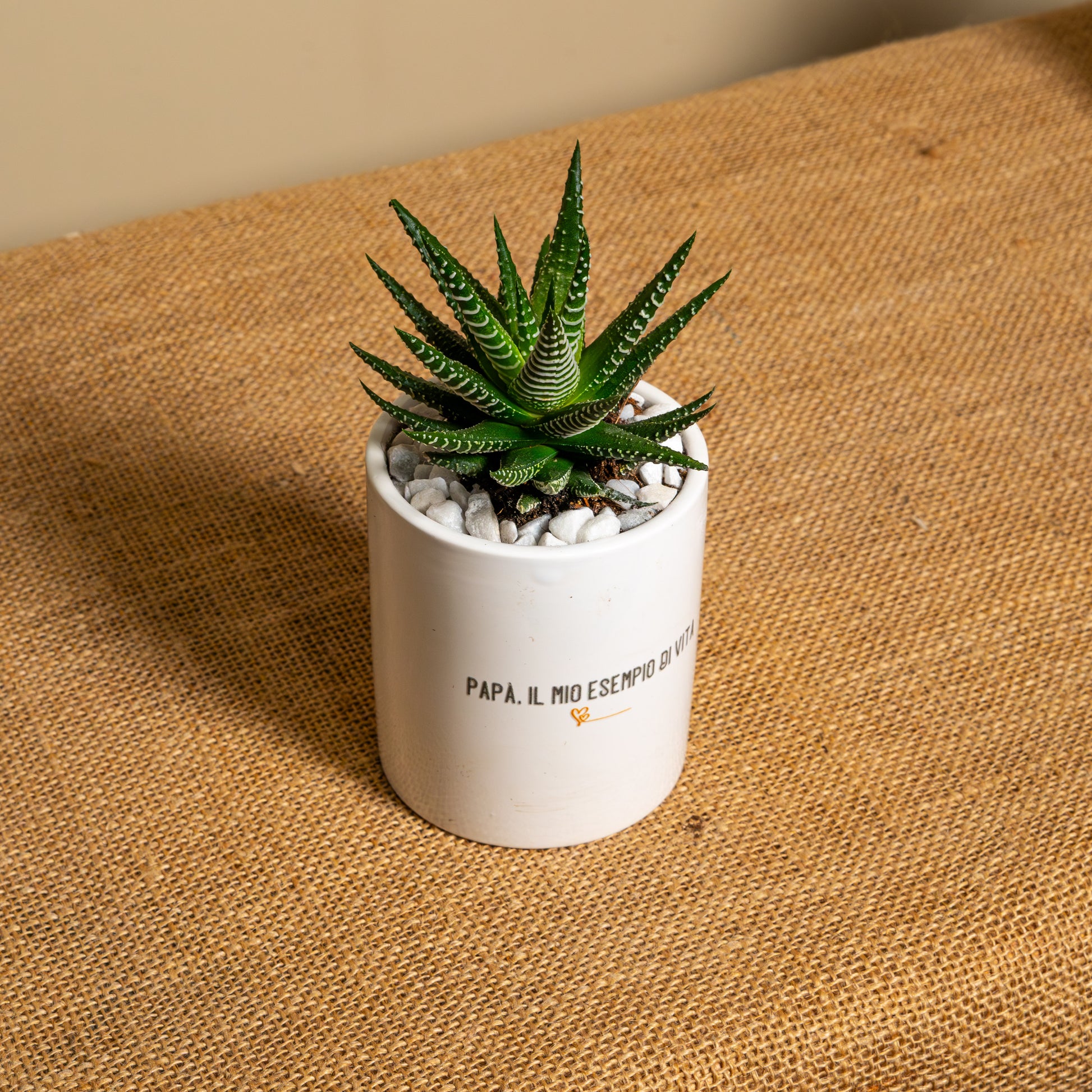 Un regalo che parla direttamente al cuore di ogni papà: un vaso in ceramica artigianale con una dedica che celebra chi è sempre stato un esempio di vita, accompagnato da una piantina grassa che cresce insieme all’affetto e alla gratitudine che proviamo per lui