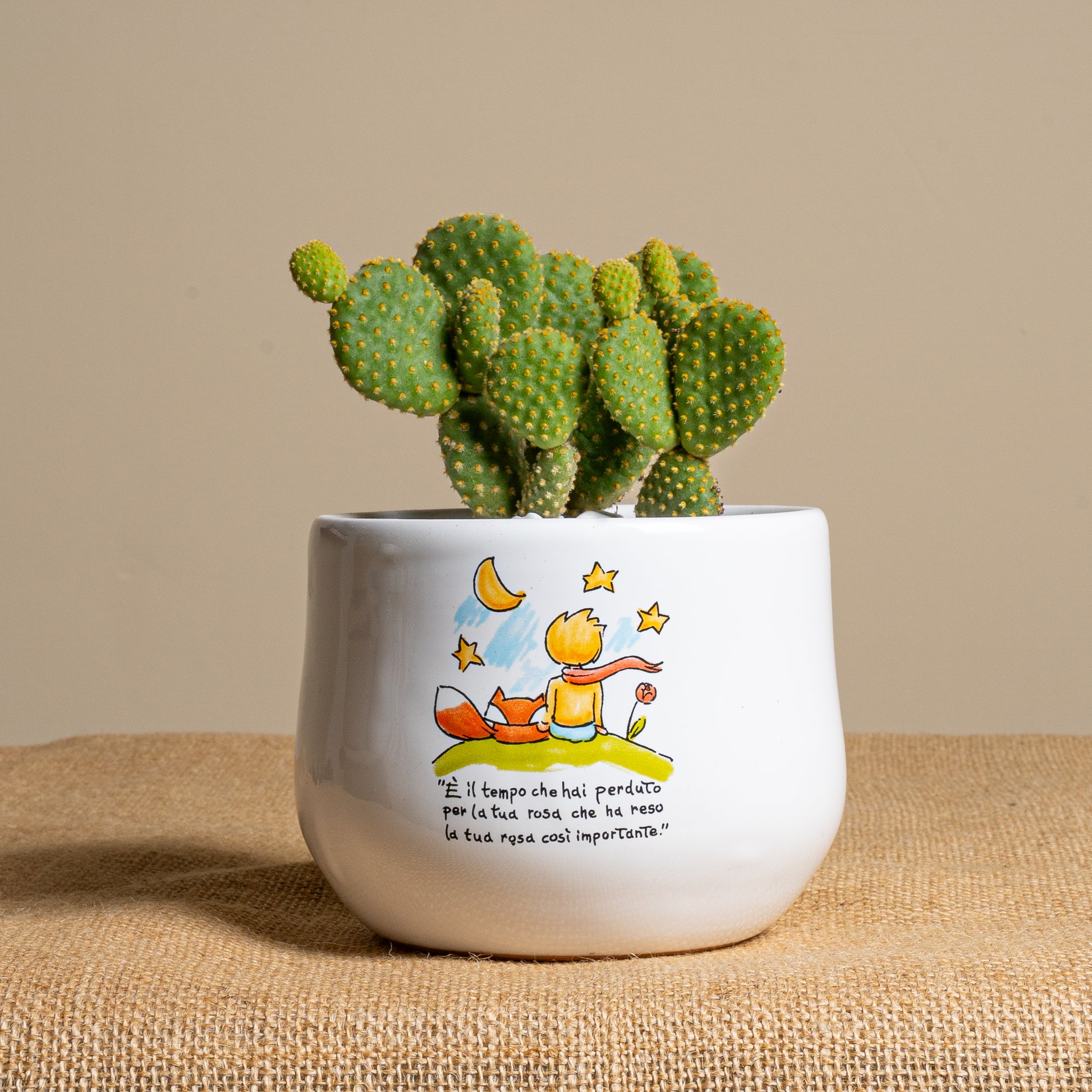 Rendi il tuo evento regale con il nostro vaso di ceramica a tema 'Piccolo Principe' contente una graziosa piantina grassa vera! La bomboniera perfetta per battesimi e comunioni che aggiunge un tocco favoloso ad ogni tavolo. Un ricordo dolce e regale per tutti!
