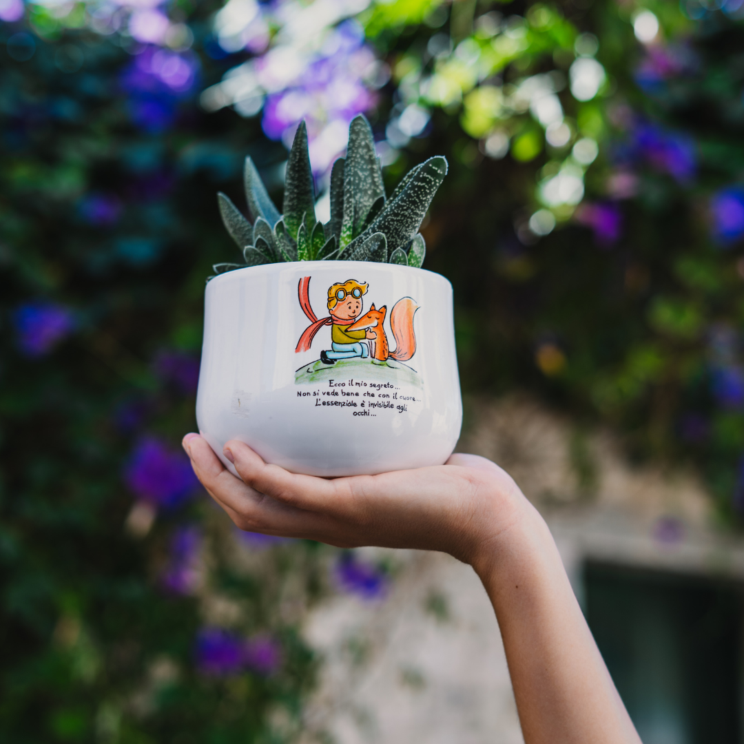 Rendi il tuo evento regale con il nostro vaso di ceramica a tema 'Piccolo Principe' contente una graziosa piantina grassa vera! La bomboniera perfetta per battesimi e comunioni che aggiunge un tocco favoloso ad ogni tavolo. Un ricordo dolce e regale per tutti!
