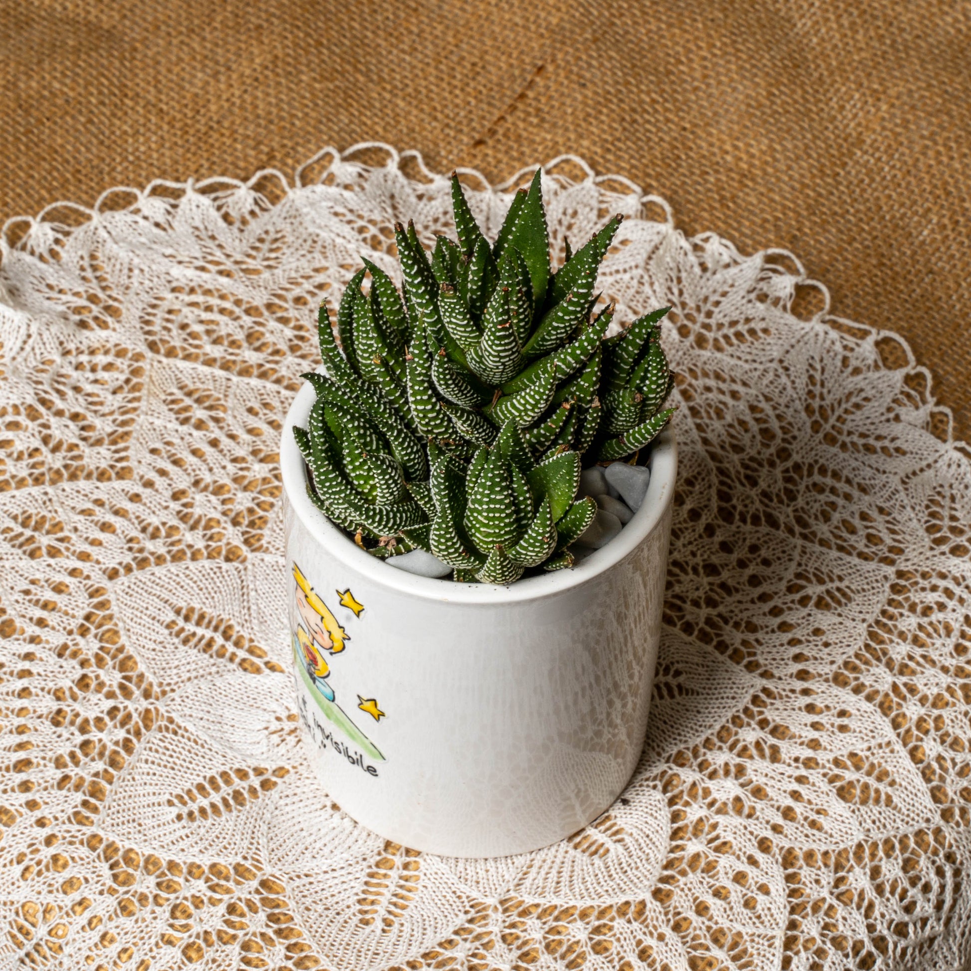 Un dolce omaggio al Piccolo Principe! Vaso in ceramica con piantina grassa, ideale per battesimi, comunioni e momenti speciali. Un regalo originale che dura nel tempo!