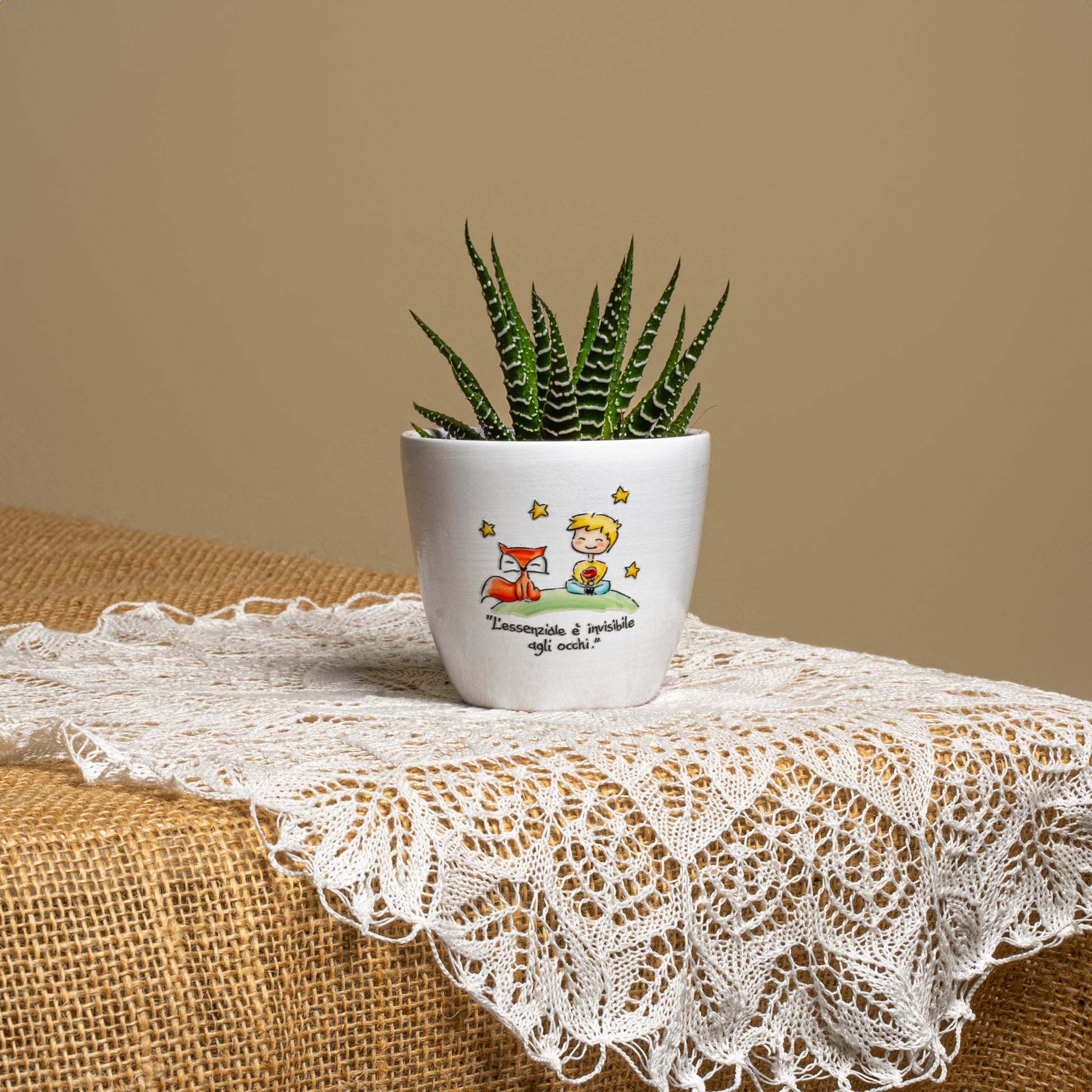 Un piccolo capolavoro ispirato al Piccolo Principe! Mini vaso in ceramica con piantina grassa, perfetto per battesimi, comunioni e ogni occasione speciale. Un regalo unico che dura nel tempo!