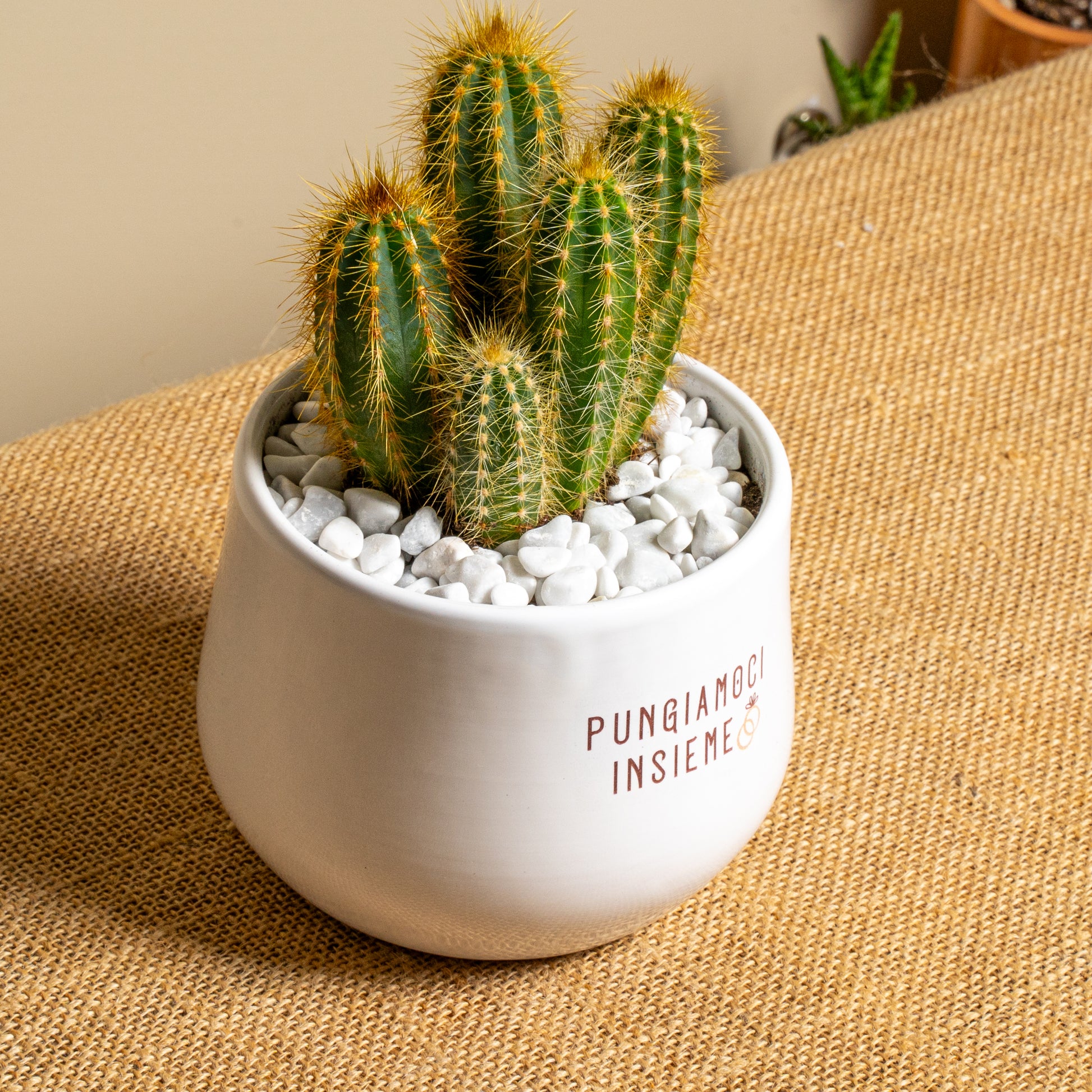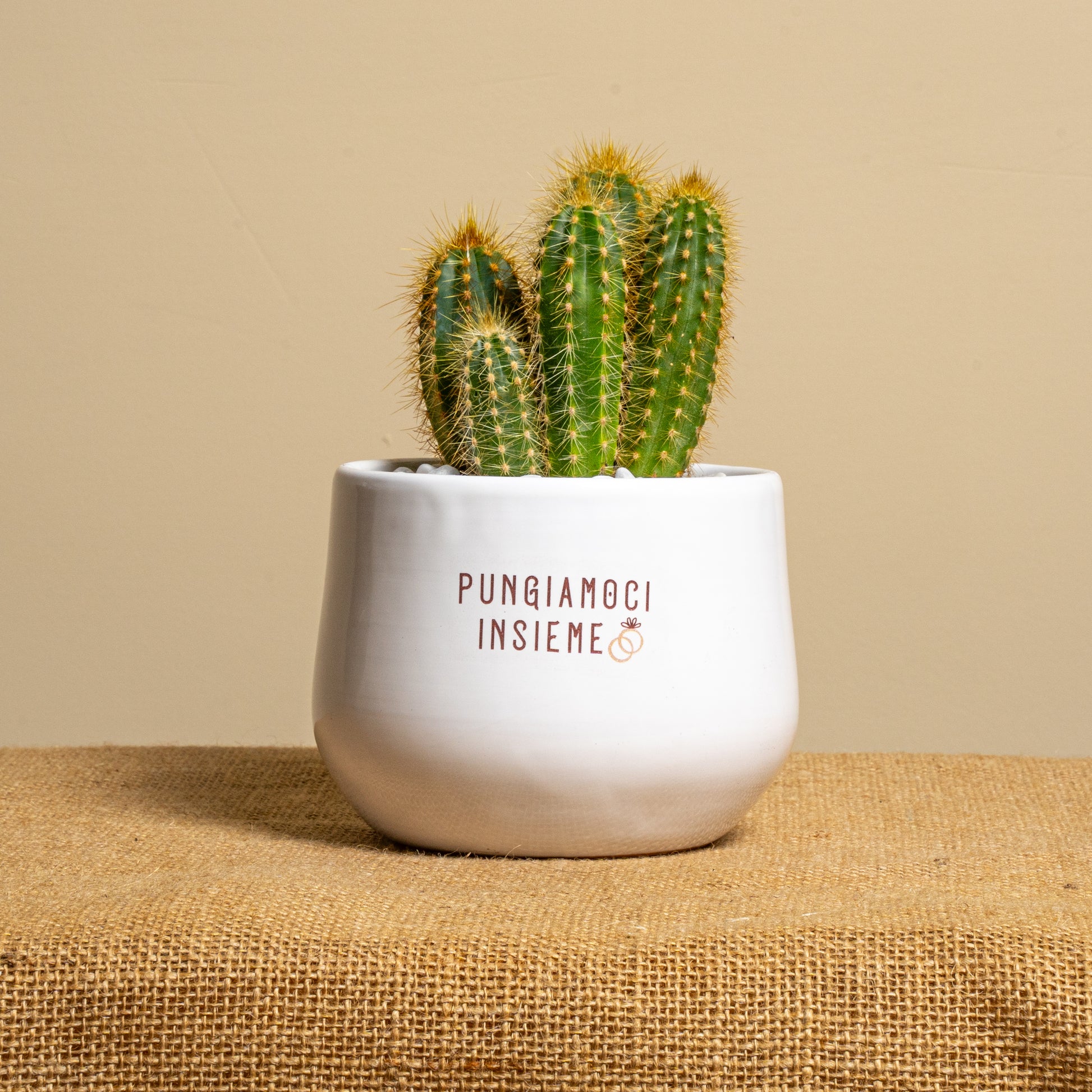 Coltiva amore pungente con il nostro vaso di ceramica con cactus vero! Perché è bello pungersi insieme... d'amore! Un regalo che cresce con emozioni puntute e dolci.