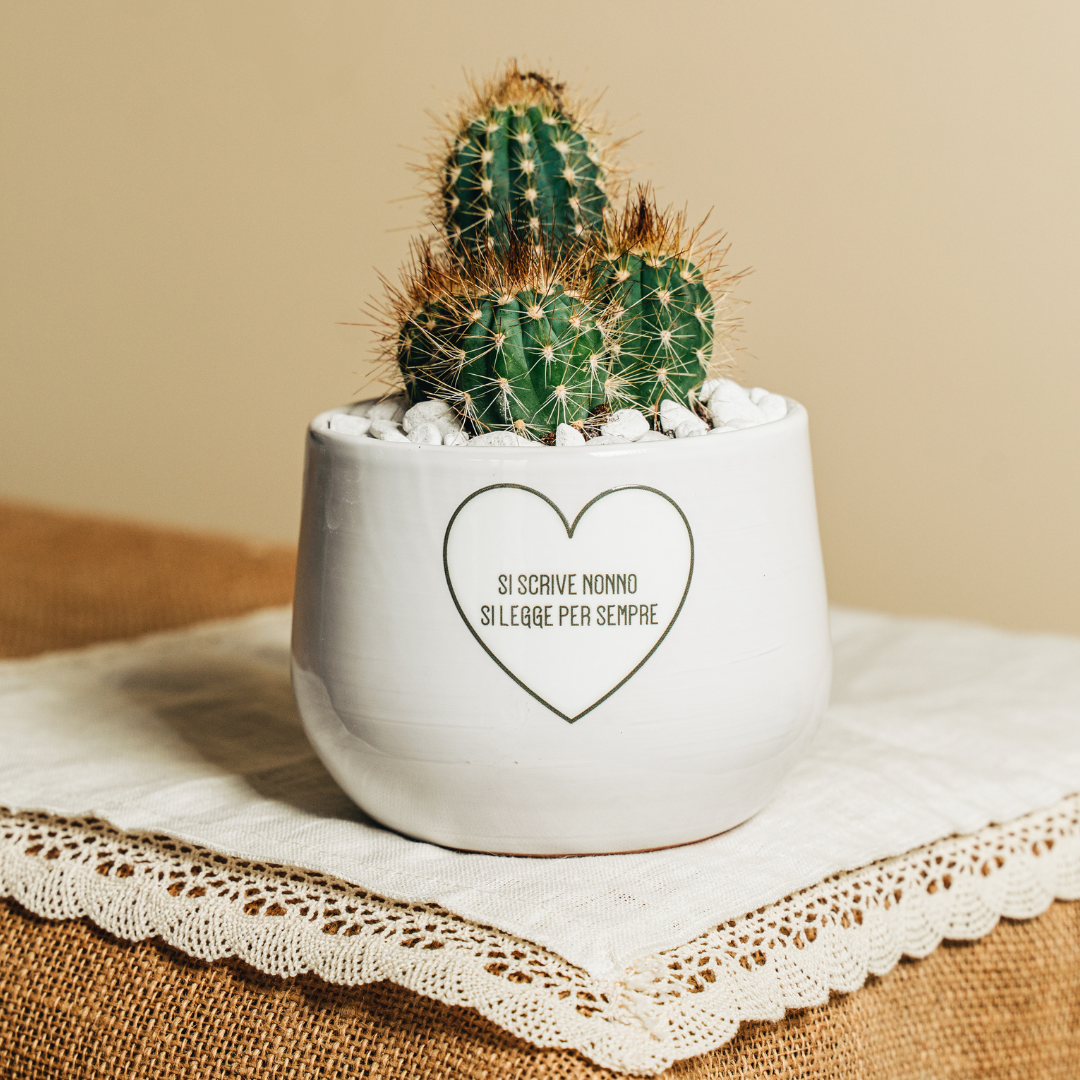 Vaso di ceramica personalizzato con dedica per nonno: 'Si scrive nonno, si legge per sempre.' Con piantina grassa vera inclusa ! Regalo perfetto per la Festa dei Nonni!