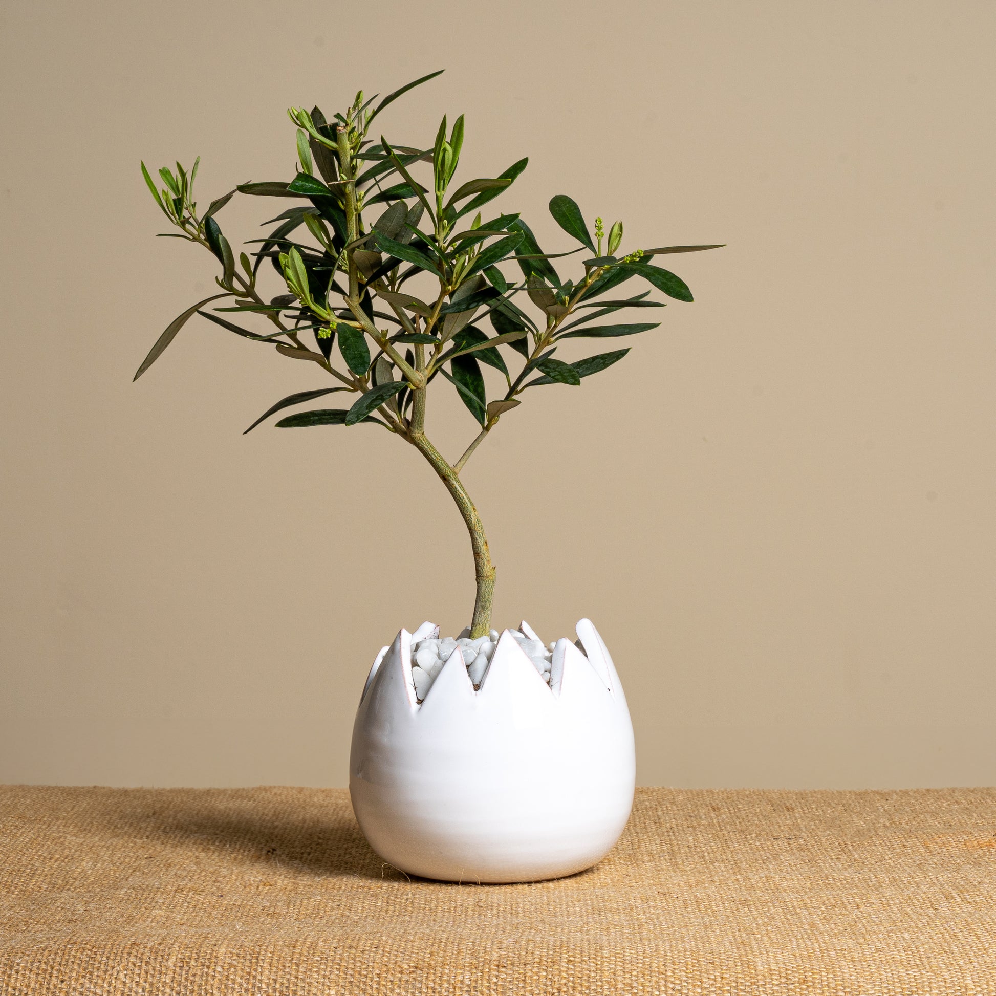 Un regalo che celebra la Pasqua e la rinascita: un vaso in ceramica a forma di uovo, con un ulivo all'interno. Perfetto per chi cerca un'idea originale e simbolica, ideale non solo per Pasqua, ma per ogni occasione speciale